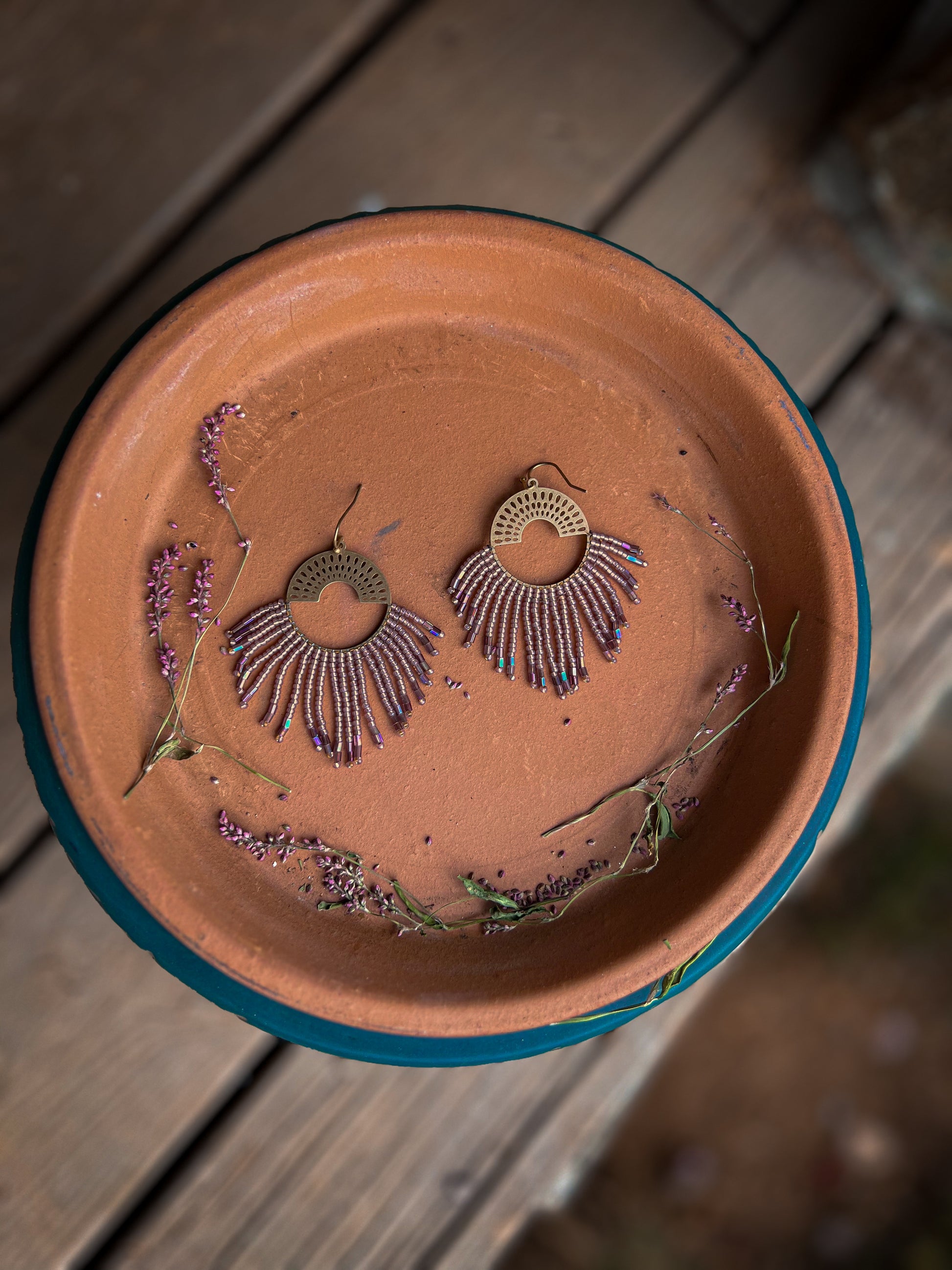 Brass pendant beaded earrings